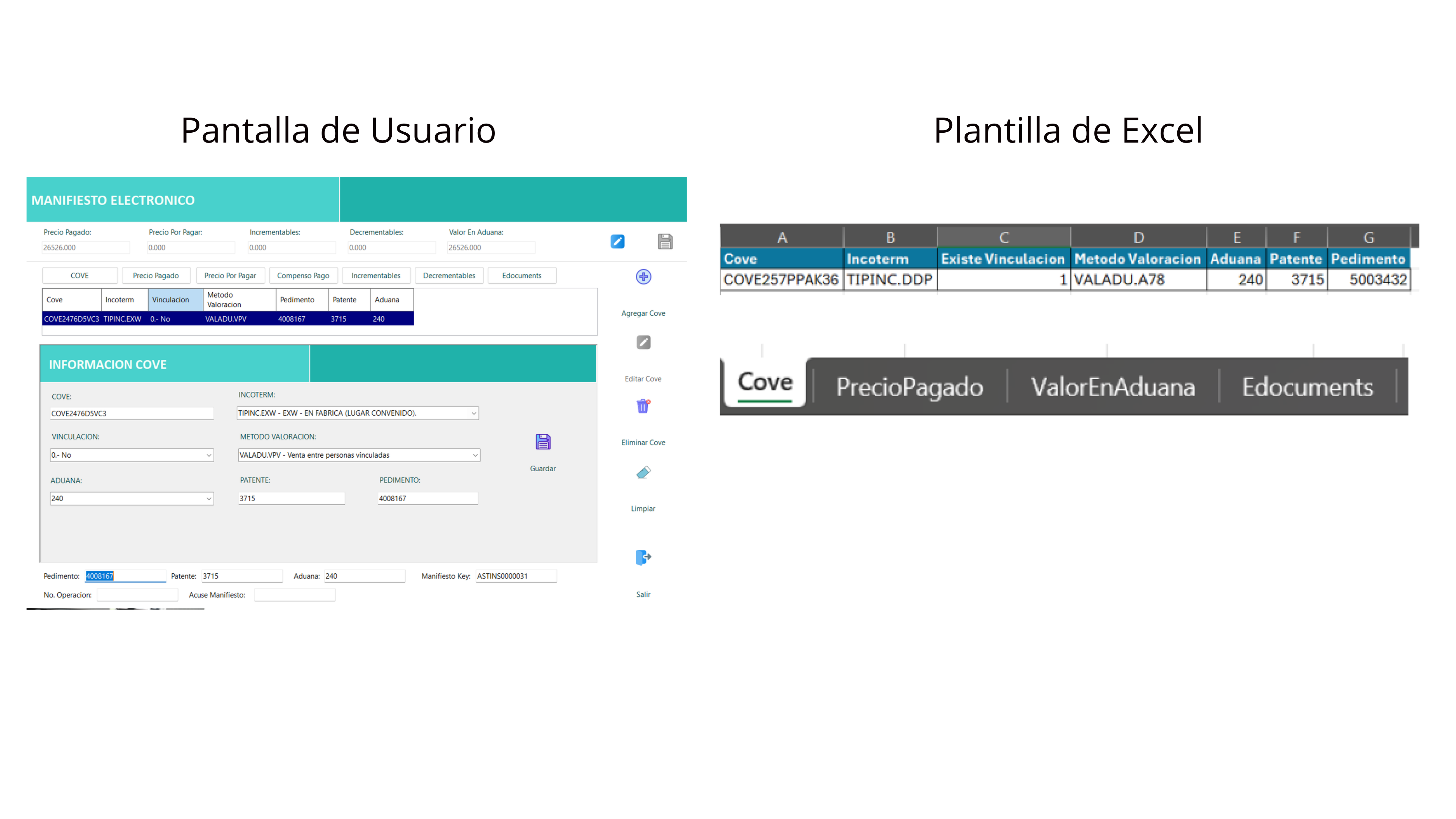 AS-TERA MVE administra de forma integral el Expediente Digital de Comercio Exterior, vinculando automáticamente los e-Documents declarados en el pedimento con la Manifestación de Valor Electrónica.