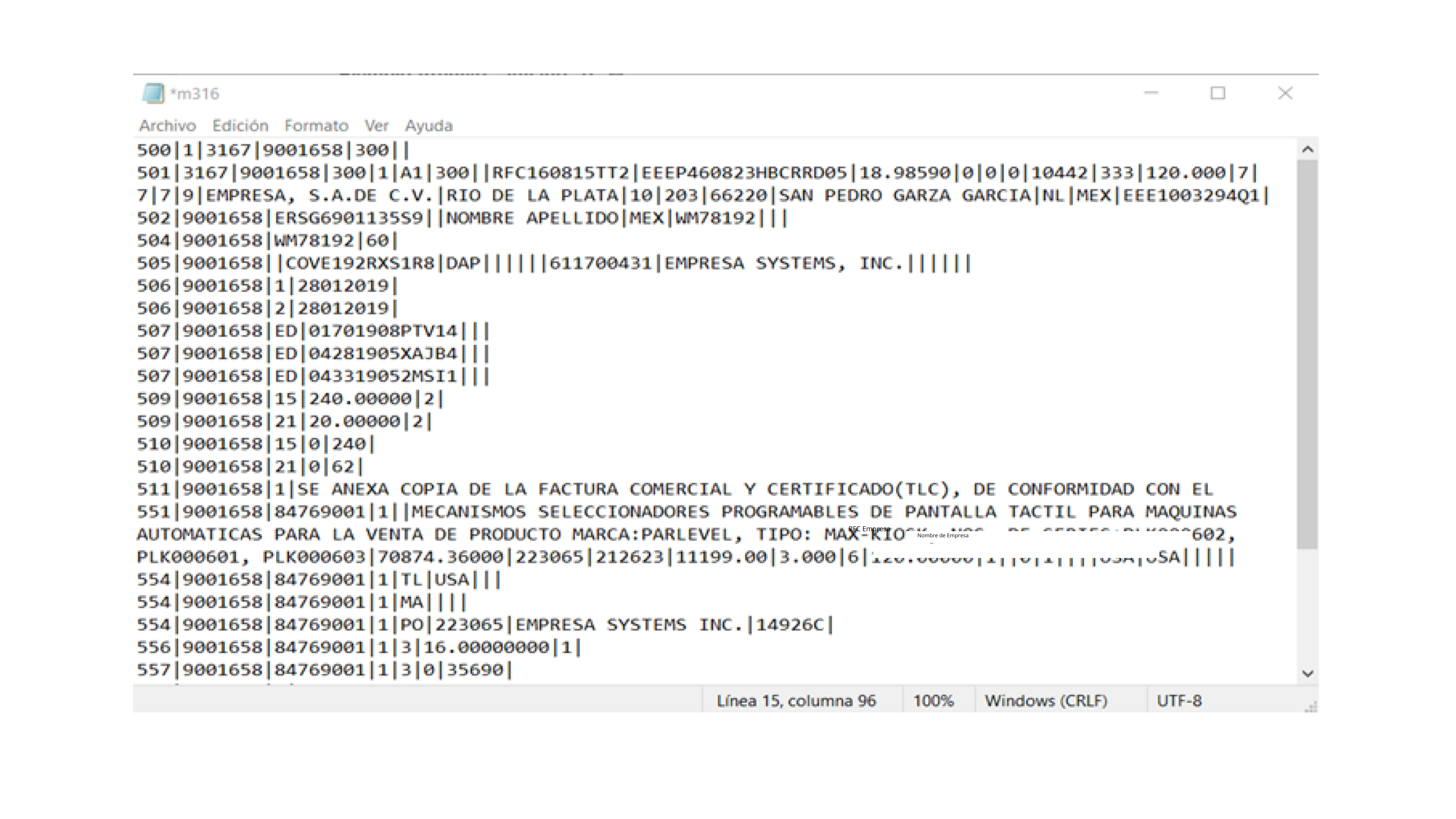 AS-TERA MVE realiza la lectura estructurada del Archivo M3, extrayendo automáticamente información clave del pedimento:
